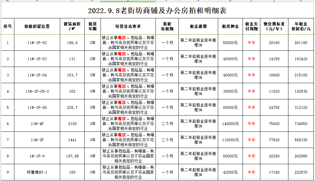 以上房屋均為閑置,租期3年。即日起展示,有意者請攜帶有效證件至我公司報名,交納規(guī)定數(shù)額保證金即可參拍;報名截止至9月7日16時。