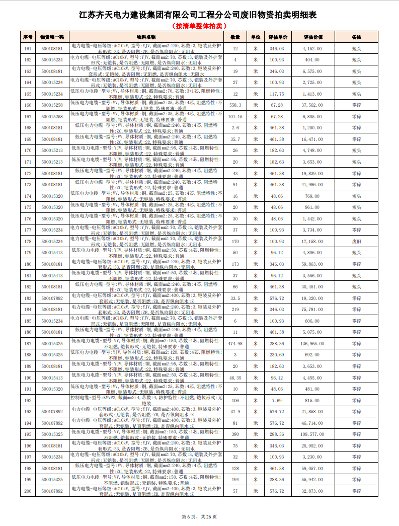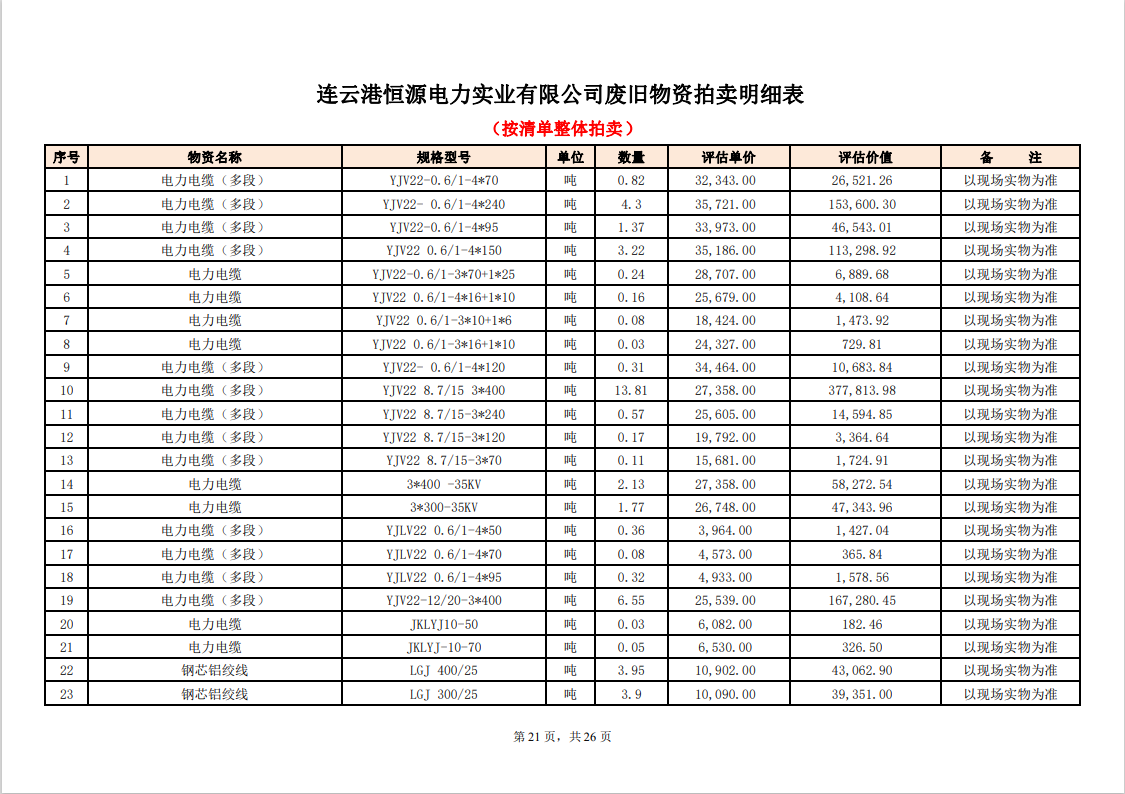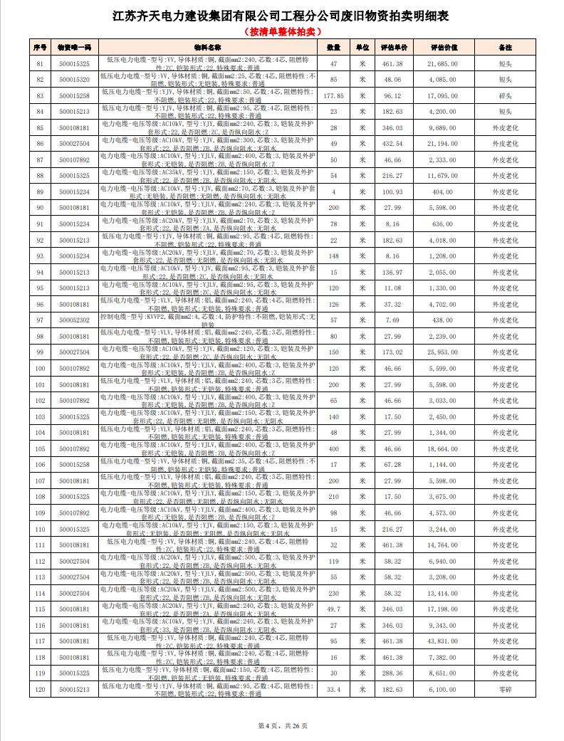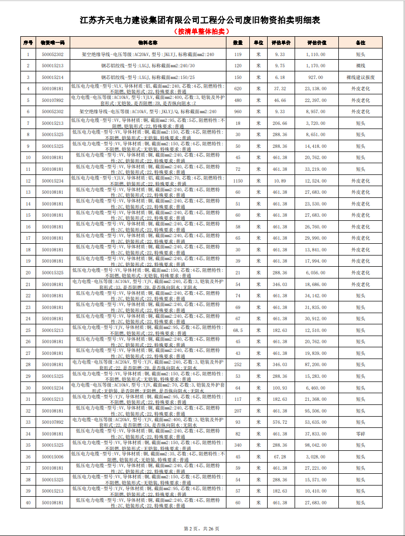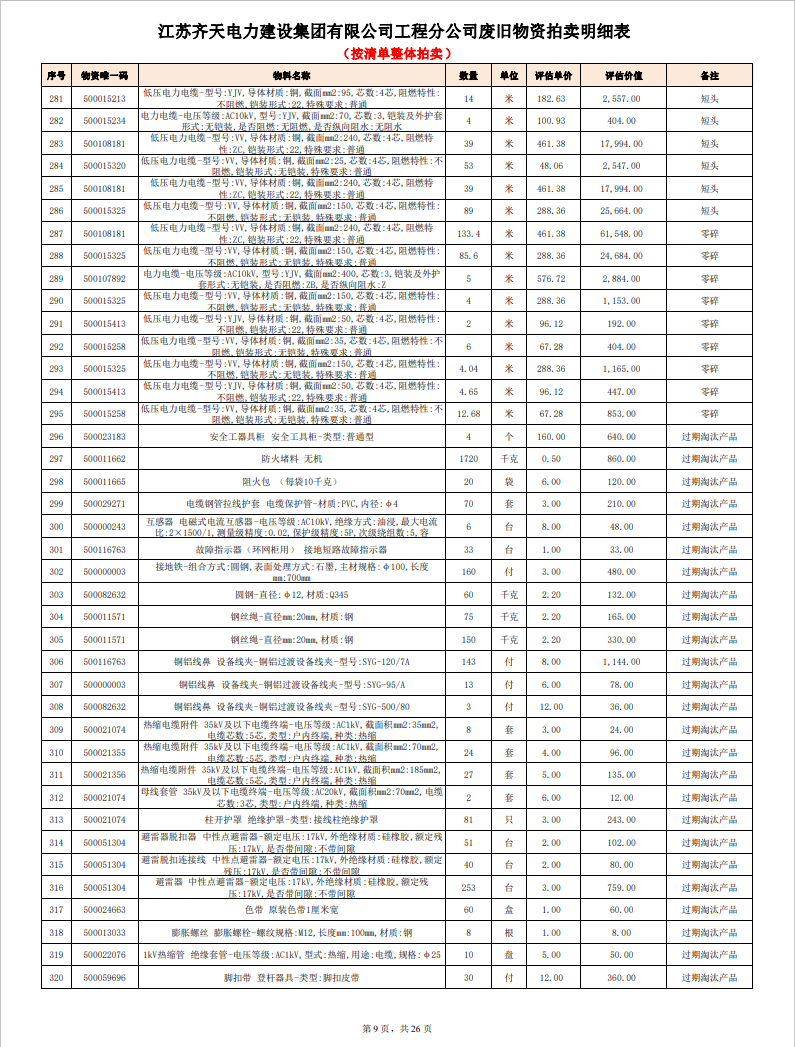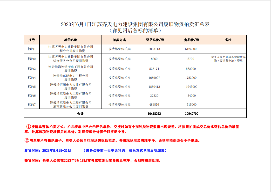 關(guān)注微信公眾號定于2023年6月1日上午9:30時(網(wǎng)絡(luò)延時除外)在中拍平臺公開拍賣廢舊電力物資一批。主要包含:銅芯電纜、鋁芯電纜、鋼芯鋁絞線、廢舊鋼材、變壓器、電力設(shè)備、辦公設(shè)備、雜項物資、蓄電池等。