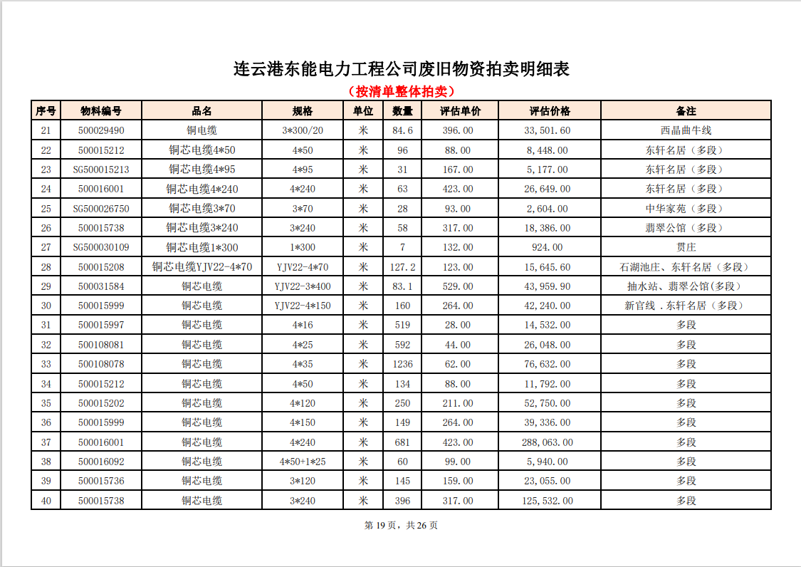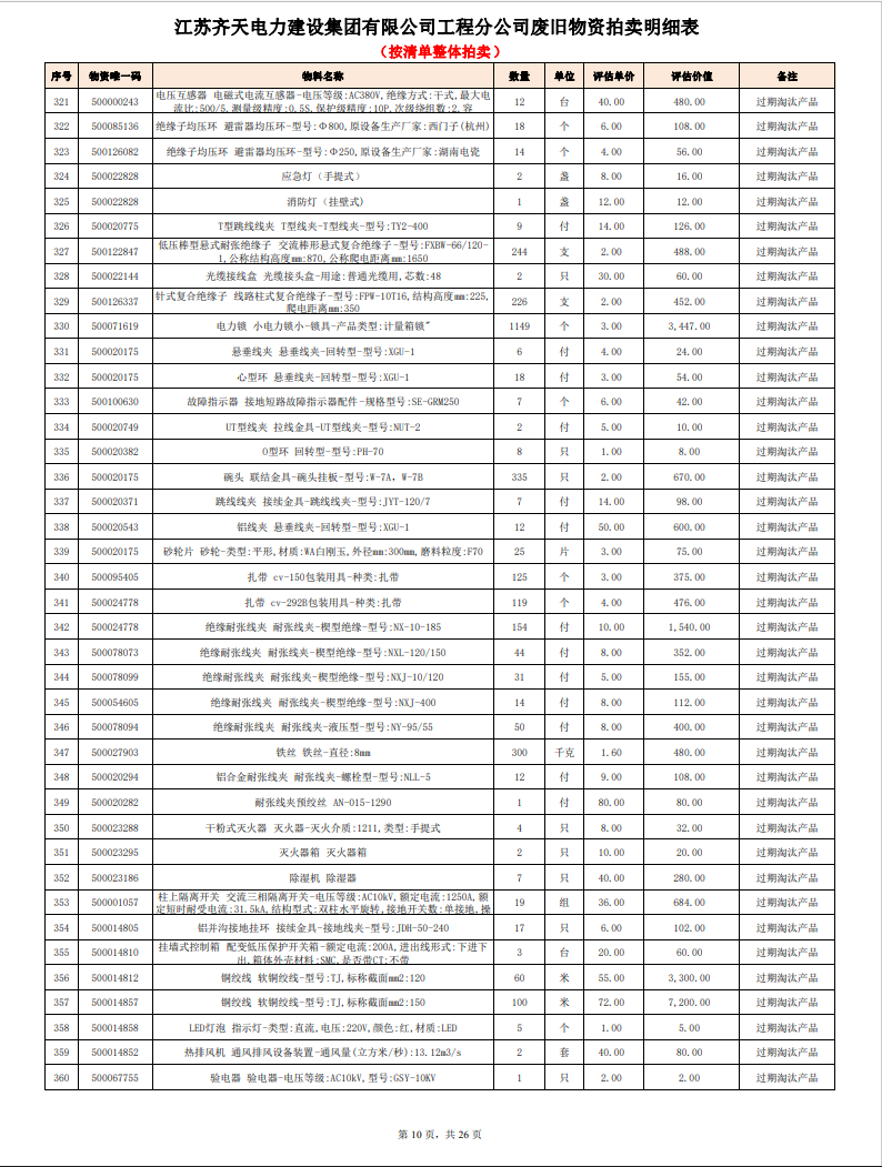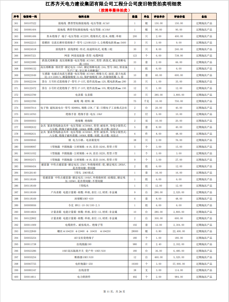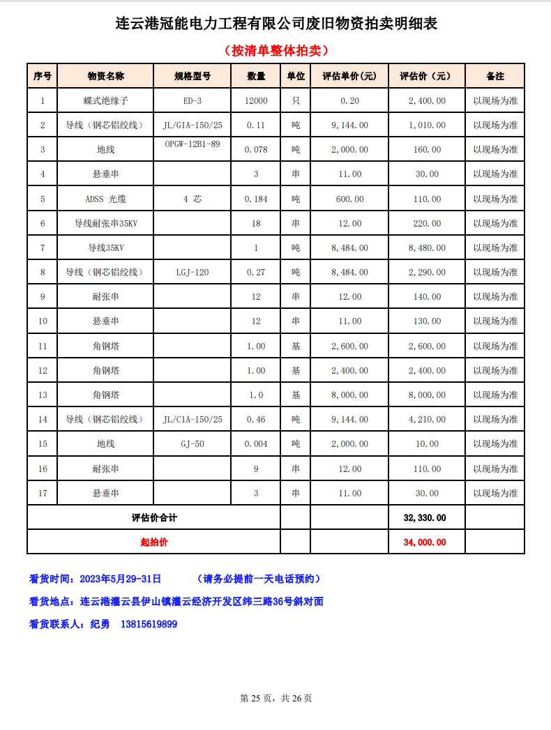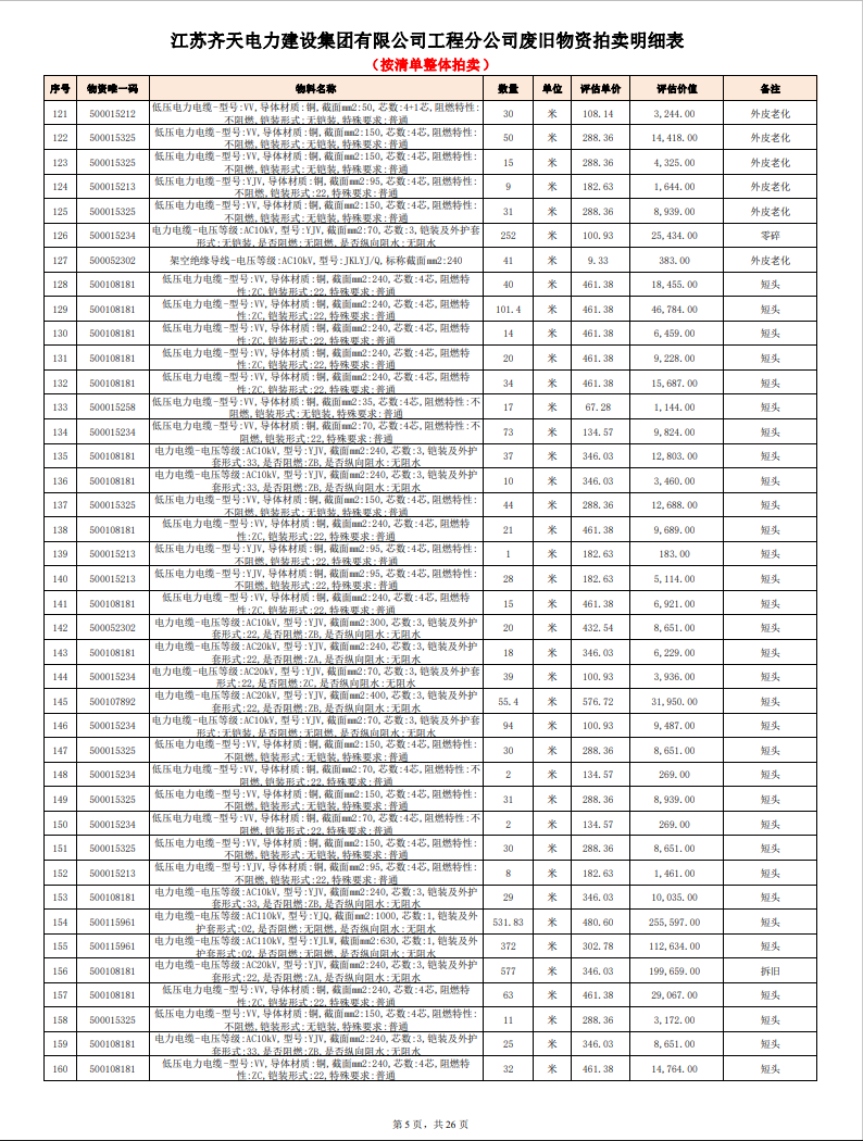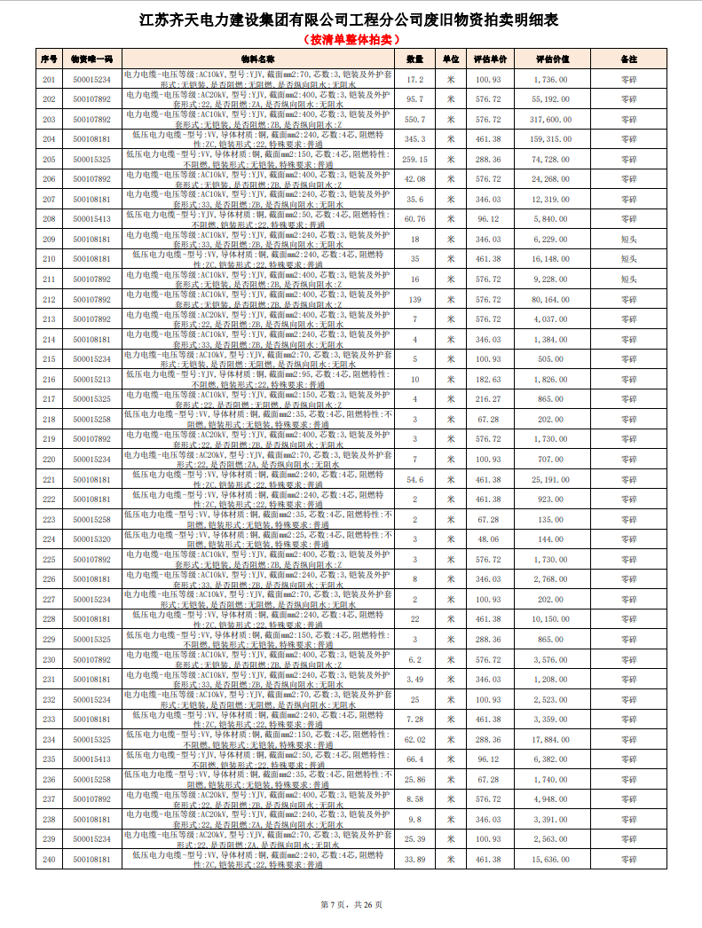關(guān)注微信公眾號定于2023年6月1日上午9:30時(網(wǎng)絡(luò)延時除外)在中拍平臺公開拍賣廢舊電力物資一批。主要包含:銅芯電纜、鋁芯電纜、鋼芯鋁絞線、廢舊鋼材、變壓器、電力設(shè)備、辦公設(shè)備、雜項物資、蓄電池等。