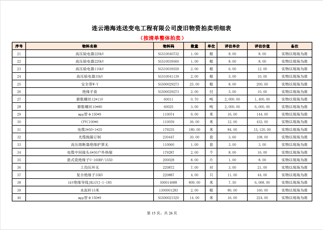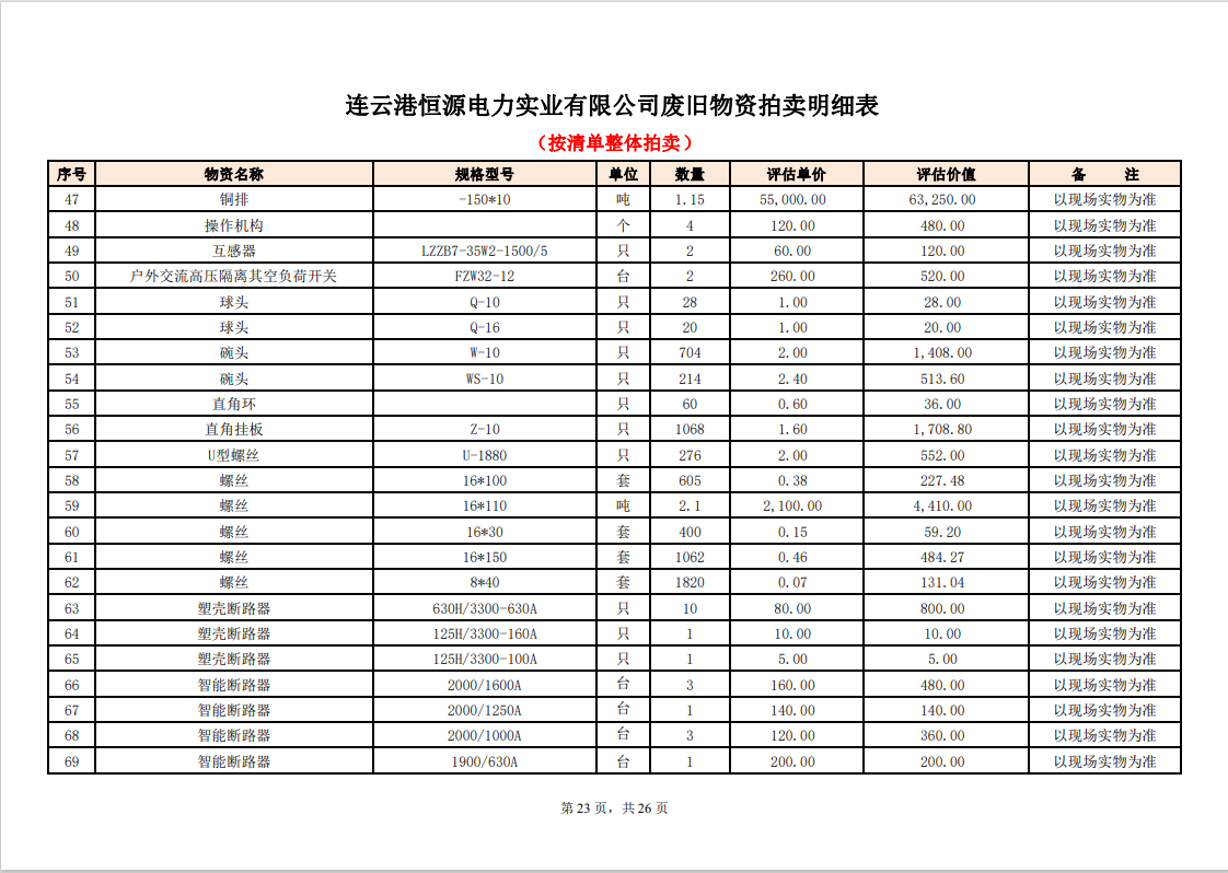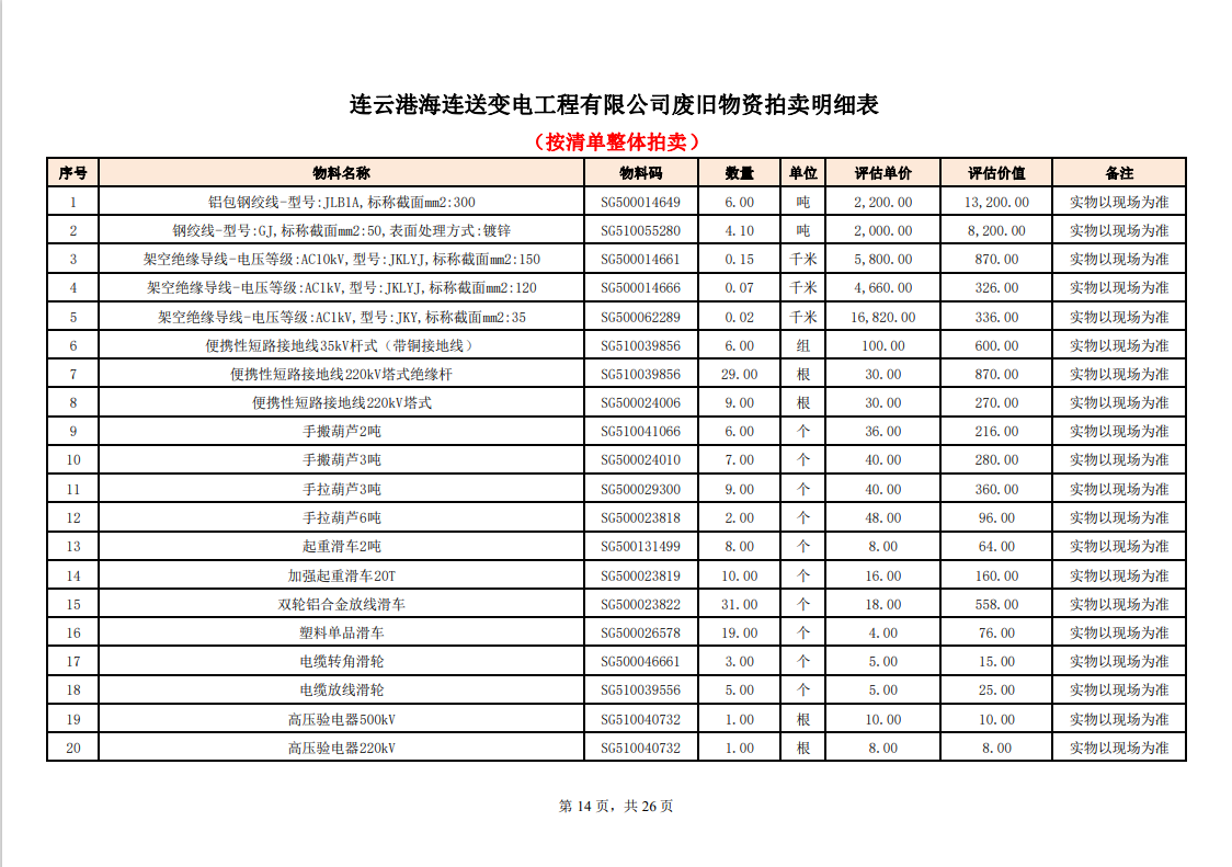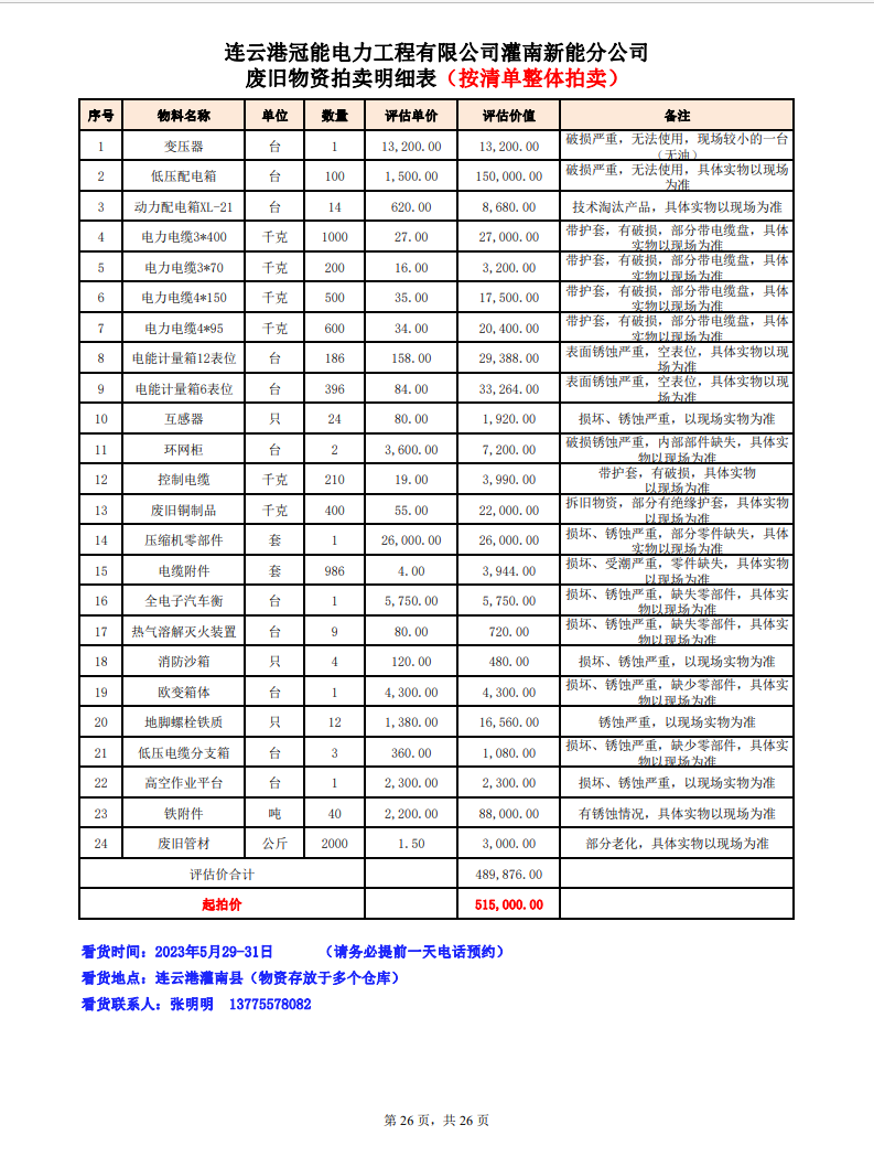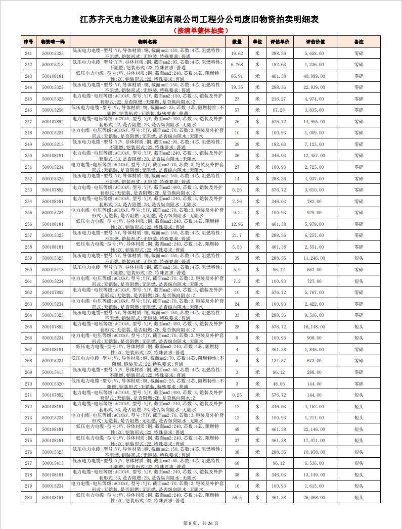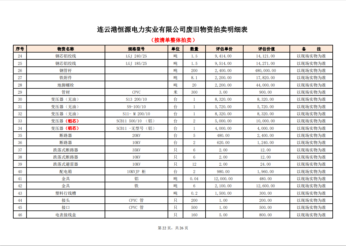 關(guān)注微信公眾號定于2023年6月1日上午9:30時(網(wǎng)絡(luò)延時除外)在中拍平臺公開拍賣廢舊電力物資一批。主要包含:銅芯電纜、鋁芯電纜、鋼芯鋁絞線、廢舊鋼材、變壓器、電力設(shè)備、辦公設(shè)備、雜項物資、蓄電池等。