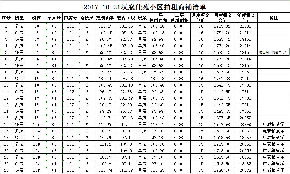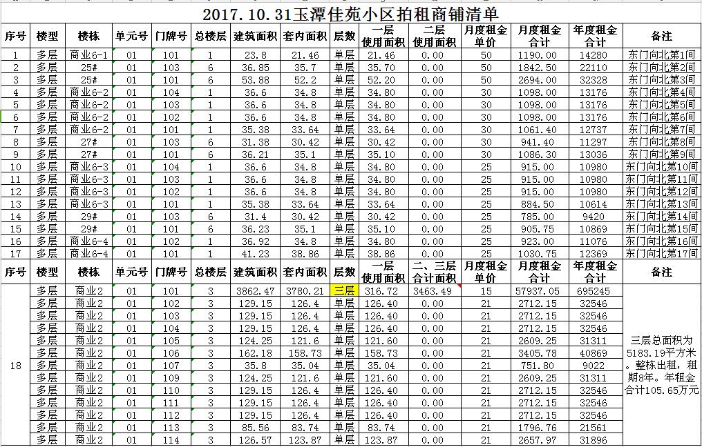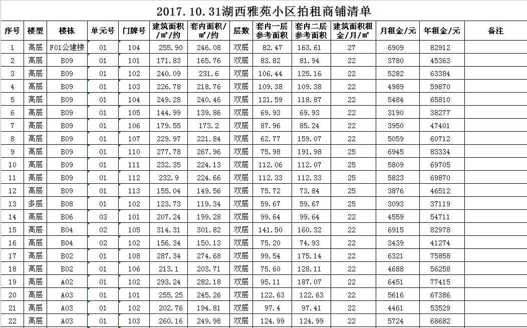 關(guān)注微信公眾號我公司受委托,定于2017年10月31日10時在本公司拍賣廳對以下小區(qū)門面房進行公開拍租: