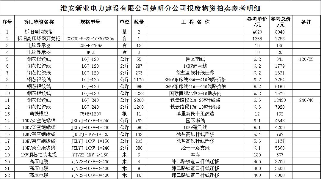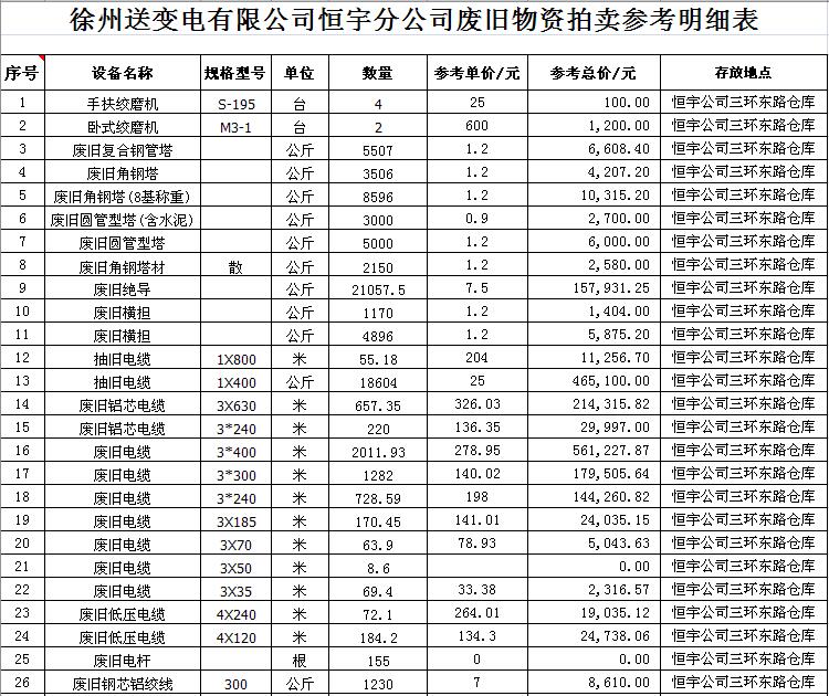 關(guān)注微信公眾號(hào)受江蘇徐供、淮供集體資產(chǎn)運(yùn)營(yíng)中心委托,我公司將通過(guò)中國(guó)拍賣(mài)行業(yè)協(xié)會(huì)網(wǎng)絡(luò)拍賣(mài)平臺(tái)以網(wǎng)絡(luò)競(jìng)價(jià)的方式公開(kāi)拍賣(mài)以下單位的廢舊物資各一批: