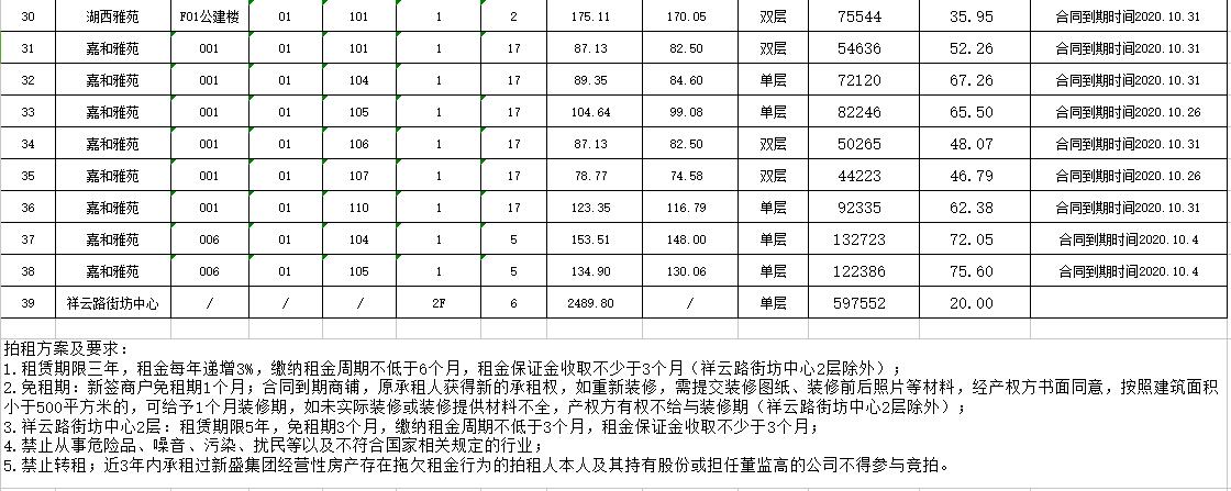 即日起展示。有意者請攜帶有效證件至我公司辦理報名手續(xù),并交納競拍保證金即可參加拍賣會(商鋪保證金每間2萬元,祥云路街坊中心二層保證金10萬元),報名截止至9月15日16時。