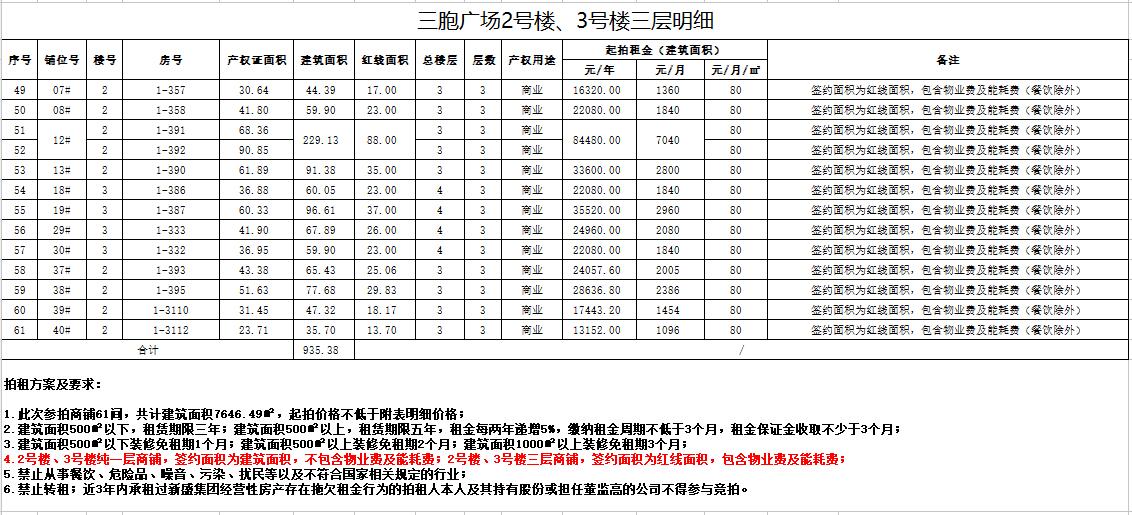 關(guān)注微信公眾號(hào)我公司受委托,定于2020年10月30日10時(shí)在徐州中山南路55號(hào)本公司三樓拍賣(mài)廳公開(kāi)拍租:三胞廣場(chǎng)2號(hào)樓、3號(hào)樓1層、3層等部分商鋪及辦公房,面積分別約為數(shù)十至數(shù)百平米,租期3-5年。禁止從事危險(xiǎn)品、有污染及擾民的行業(yè)經(jīng)營(yíng)。