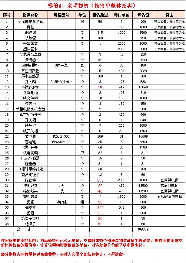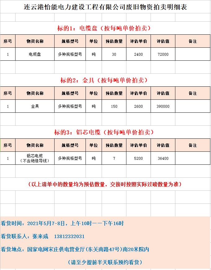 1、連云港怡能電力建設(shè)工程有限公司廢舊物資。主要包含:廢舊鋁芯電纜、金具、電纜盤、雜項(xiàng)物資等。(保證金10萬元)