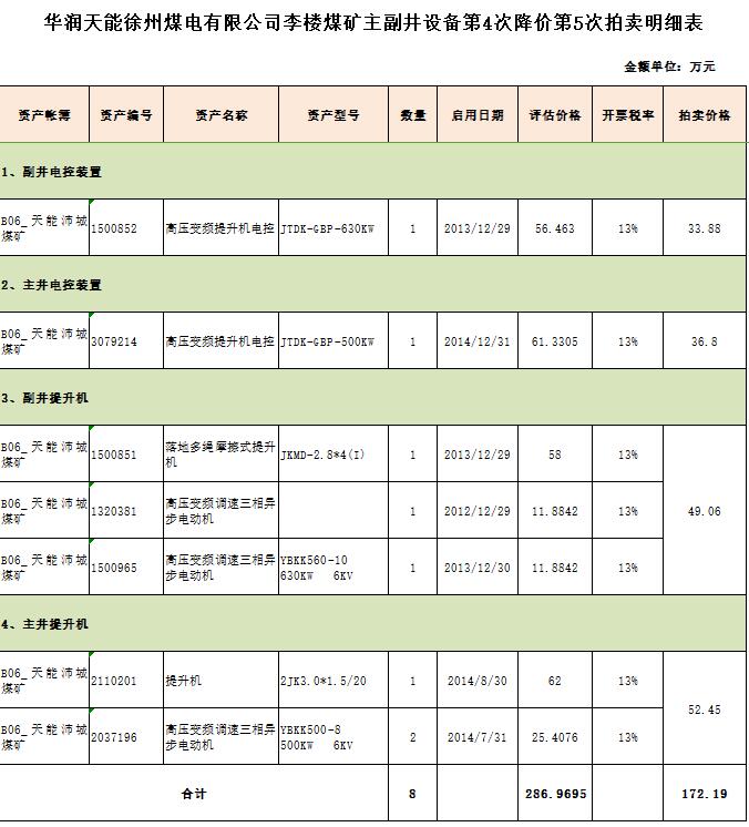 2、華潤天能李樓煤礦二手礦用設(shè)備一批。主要包括:主副井提升機(jī)、主副井電控裝置、單雙梁起重機(jī)、副井高低壓開關(guān)柜、主井低壓開關(guān)柜、防爆全站儀等。(保證金10萬元)